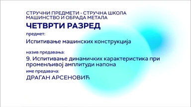 СШ4 – Испитивање машинских конструкција, 9. час: Испитивање динамичких карактеристика при променљивој амплитуди напона