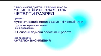 СШ4 – Аутоматизација производње и флексибилни производни системи, 9. час: Основни појмови роботике и робота
