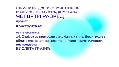 СШ4 – Конструисање, 14. час: Спојеви за преношење аксијалних сила. Дефинисање облика елемената са аспекта монтаже...