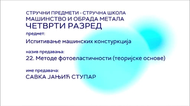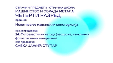 СШ4 – Испитивање машинских конструкција, 24. час: Фотоеластична метода (изохроме, изоклине и фотоеластични материјали)