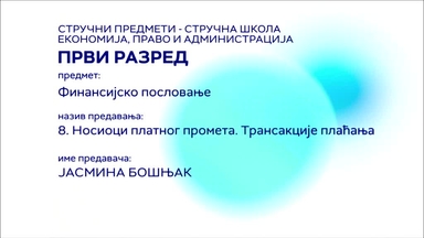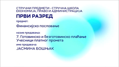 СШ1 – Финансијско пословање, 6. час: Појам, значај и врсте платног промета. Посредан и непосредан платни промет