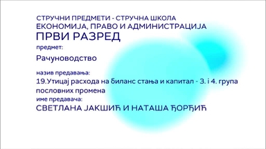 СШ1 – Рачуноводство, 19. час: Утицај расхода на биланс стања и капитал - 3. и 4. група пословних промена