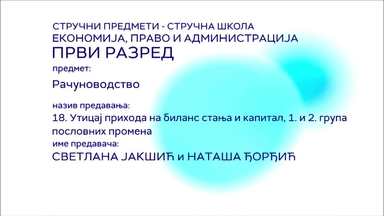 СШ1 – Рачуноводство, 18. час: Утицај прихода на биланс стања и капитал, 1. и 2. група пословних промена