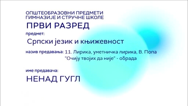 СШ1 – Српски језик и књижевност, 11. час: Лирика, уметничка лирика В. Попа "Очију твојих да није" (обрада)