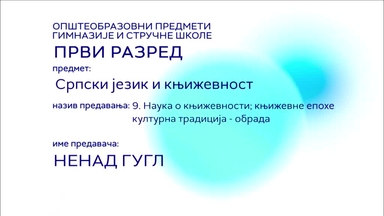 СШ1 – Српски језик и књижевност, 9. час: Наука о књижевности, књижевне епохе културна традиција (обрада)