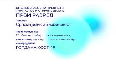 СШ1 – Српски језик и књижевност, 10. час: Уметничка/ауторска књижевност, књижевни род и врсте - систематизација