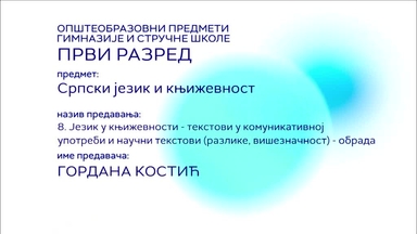 СШ1 – Српски језик и књижевност, 8. час: Језик у књижевности - текстови у комуникативној употреби... (обрада)