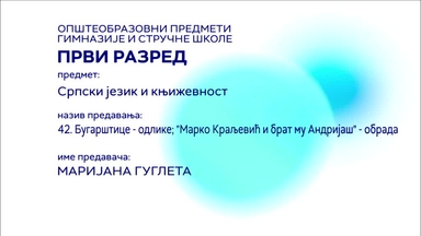 СШ1 – Српски језик и књижевност, 42. час: Бугарштице – одлике; „Марко Краљевић и брат му Андријаш“ - обрада