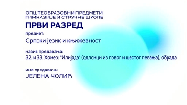 СШ1 – Српски језик и књижевност, 32. и 33. час: Хомер: „Илијада“ (одломци из првог и шестог певања), обрада