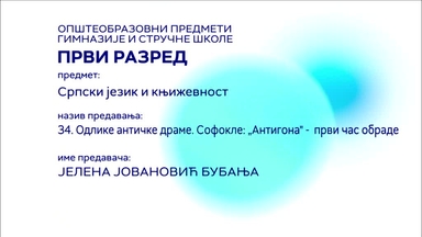 СШ1 – Српски језик и књижевност, 35. час: Одлике античке драме. Софокле: „Антигона“ – други час обраде