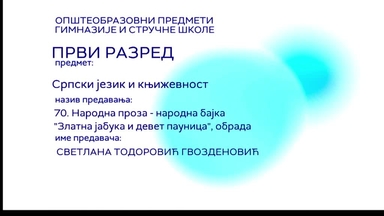 СШ1 – Српски језик и књижевност, 70. час: Народна проза – народна бајка „Златна јабука и девет пауница“ (обрада)