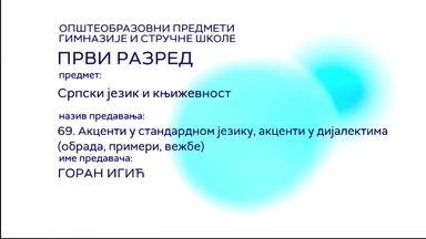 СШ1 – Српски језик и књижевност, 69. час: Акценти у стандардно језику, акценти у дијалектима (обрада, примери, вежбе)