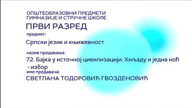 Тренутно СШ1 – Српски језик и књижевност, 72. час: Бајка у источној цивилизацији: Хиљаду и једна ноћ – избор