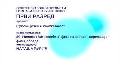 СШ1 – Српски језик и књижевност, 80. час: Милован Витезовић: "Лајање на звезде", корелација - филм (обрада)