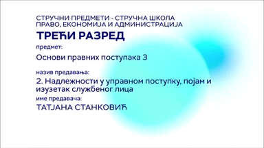 СШ3 – Основи правних поступака 3, 2. час: Надлежности у управном поступку, појам и изузетак службеног лица