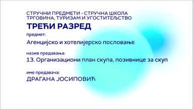 СШ3 – Агенцијско и хотелијерско пословање, 7. час: Појам и садржај организационог плана (сценарија скупа)