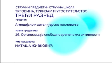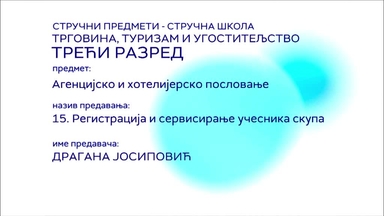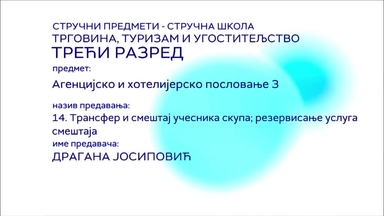 СШ3 – Агенцијско и хотелијерско пословање, 14. час: Трансфер и смештај учесника скупа; резервисање услуга смештаја
