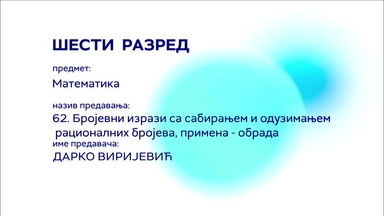 ОШ6 – Математика, 62. час: Бројевни изрази са сабирањем и одузимањем рационалних бројева, примена (обрада)