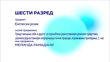ОШ6 – Енглески језик, 1. час: Представљање себе и другог уз коришћење једноставнијих језичких средстава