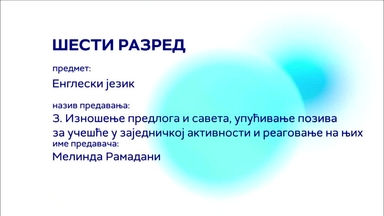 ОШ6 – Енглески језик, 3. час: Изношење предлога и савета, упућивање позива за учешће у заједничкој активности...