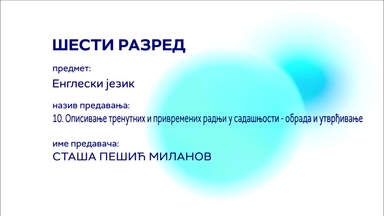 ОШ6 – Енглески језик, 10. час: Описивање тренутних и привремених радњи у садашњости (обрада и утврђивање)