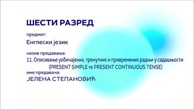 ОШ6 – Енглески језик, 7. час: Описивање уобичајених, тренутних и привремених радњи у садашњости (обрада и утврђивање)