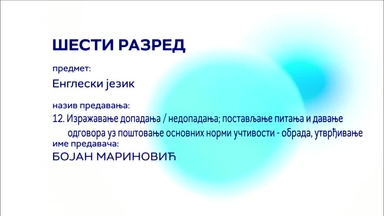 ОШ6 – Енглески језик, 12. час: Изражавања допадања/недопадања, постављање питања... (обрада, утврђивање)