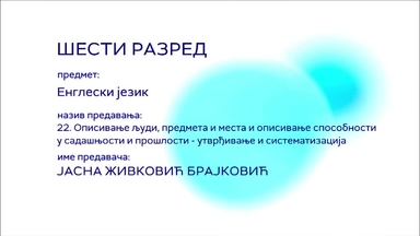 ОШ6 – Енглески језик, 22. час: Описивање људи, предмета и места и описивање способности... (утврђивање и систематизација)