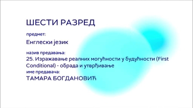 ОШ6 – Енглески језик, 25. час: Изражавање реалних могућности у будућности (First Conditional), обрада и утврђивање