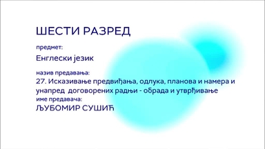 ОШ6 – Енглески језик, 27. час: Исказивање предвиђања, одлука, планова и намера и унапред договорених радњи...