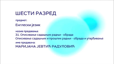 ОШ6 – Енглески језик, 31. час: Описивање садашњих радњи (обрада); Описивање садашњих и прошлих радњи (обрада и утврђ.)