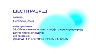 ОШ6 – Енглески језик, 32. час: Обнављање и систематизација градива пред изаду другог писменог задатка