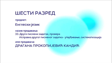 ОШ6 – Енглески језик, 33. час: Други писмени задатак, провера. Исрпавка другог писменог задатка (утврђивање, систематизација)