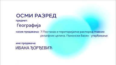 ОШ8 – Географија, 7. час: Постанак и територијални распоред главних рељефних целина. Панонски басен (утврђивање)