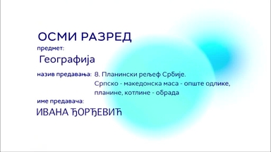 ОШ8 – Географија, 8. час: Планински рељеф Србије. Српско - македонска маса - опште одлике, планине, котлине (обрада)