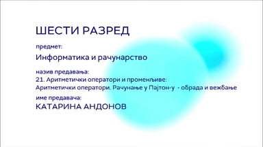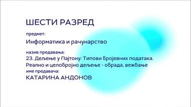 ОШ6 – Информатика и рачунарство, 23. час: Дељење у Пајтону: Типови бројевних података... (обрада, вежбање)