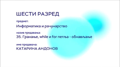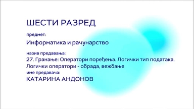 ОШ6 – Информатика и рачунарство, 27. час: Гранање: Оператори поређења. Логички тип података. Логички оператори...