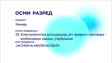 ОШ8 – Хемија, 25. час: Електролитичка дисоцијација, pH вредност раствора - комбиновани задаци (утврђивање)