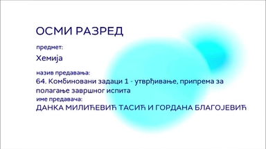 Тренутно ОШ8 – Хемија, 65. час: Комбиновани задаци 2 (утврђивање) припрема за полагање завршног испита