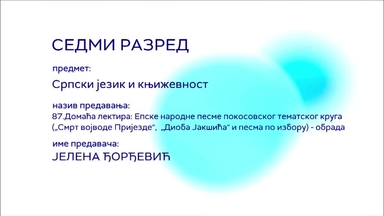 ОШ7 – Српски језик и књижевност, 87. час: Домаћа лектира: Епске народне песме покосовског тематског круга... (обрада)