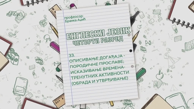 ОШ4 – Енглески језик, 33. час: Описивање догађаја - породичне прославе; Исказивање времена - тренутних активности...