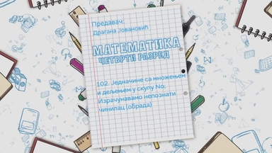 ОШ4 – Математика, 102. час: Једначине са множењем и дељењем у скупу No, израчунавамо непознати чинилац (обрада)